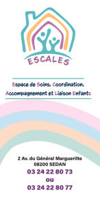 ESCALES - SEDAN INTITULÉ ESCALES (Espace de Soins, Coordination, Accompagnement et Liaison Enfants) COORDONNÉES 2 avenue du Général Margueritte – 08200 SEDAN Tél : 03 24 22 80 73 ou 03 24 22 80 77 PLUS D'INFORMATIONS Localisation de la structure Tryptique